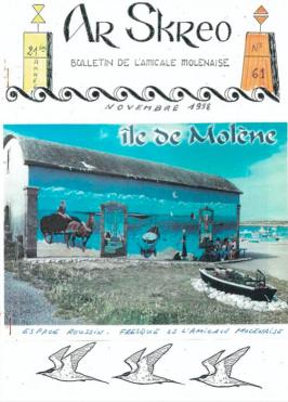 Cette fois, nous avons fait appel à deux artistes brestois. Marine Brandel et Laurent Berthemet. Cette réalisation qui évoque le vieux Molène a satisfait une grande majorité de personnes qui reconnaissent le temps passé et ses valeurs.